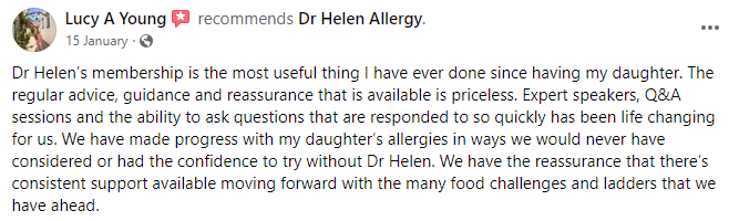 Amazing membership opportunity - I would recommend it to anyone struggling with allergies or caring for children with allergies. Quick, supportive and informative advice and guidance is available daily with regular Q&A sessions from experts too. The most useful support I have had for my daughter in almost 4 years!